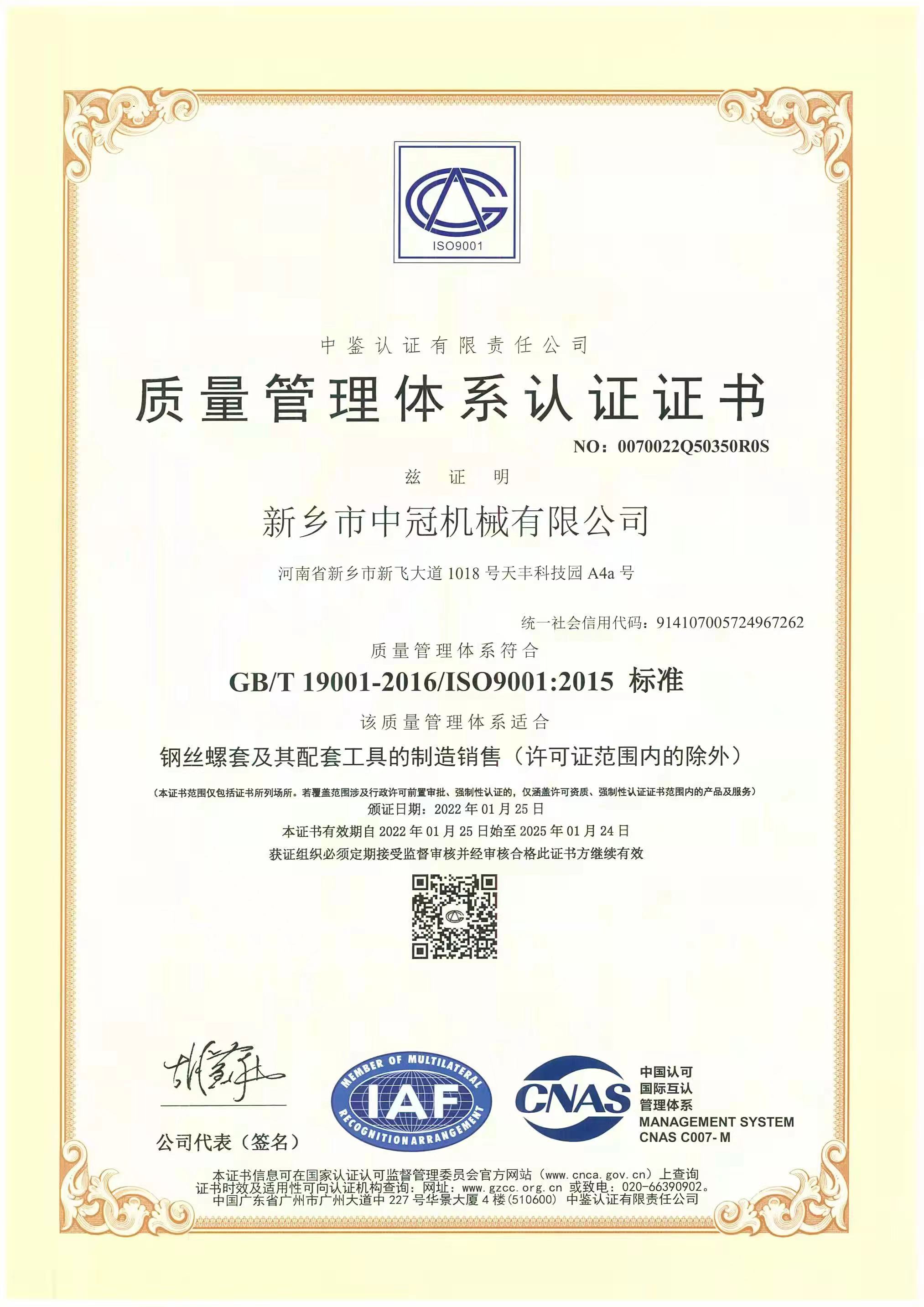 新鄉市中冠機械有限公司是從事鋼絲螺套產品及配套安裝工具技術研發、產品制造和銷售,并為客戶提供螺套使用全過程技術支持和服務的自動化制造型企業。